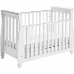 The cot bed is made with sturdy materials, ensuring your child’s safety and comfort throughout their early years. It features adjustable height settings, which can be easily modified to suit your growing child’s needs. Teething rails on either side help to protect the wood from a teething little one. The cot bed can also be easily converted into a toddler bed, ensuring that it can be used for years to come. The Mona Mini Cot Bed requires a 120 x 60 cm mattress.