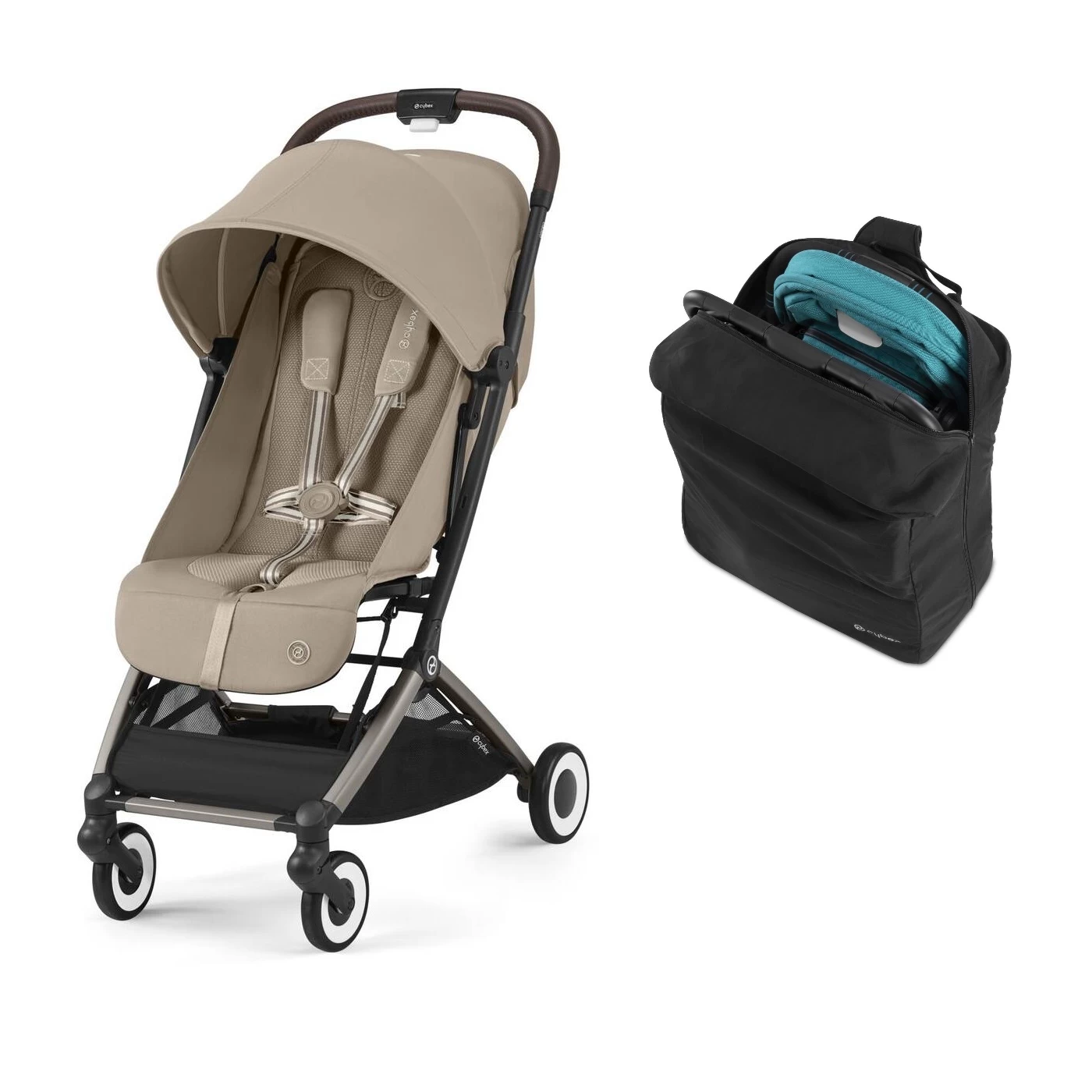 Cybex Orfeo Pushchair Almond Beige with Travel Bag