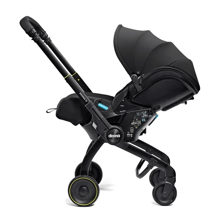 Doona X infant Car Seat and Stroller – Nitro Black is the new generation of the Doona Car Seat & Stroller. Now with 3 recline positions, Doona X allows your child to lie down and relax. With its integrated, adjustable harness and headrest, the Doona X meets the European i-Size safety regulation (R-129).