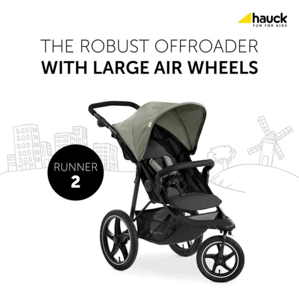 Let’s go outside with our family off-roader. Regardless of whether you decide to go on an excursion into nature or a shopping tour, the extra large air wheels promise a low-vibration ride. And the buggy masters even tight curves thanks to the swivel wheel. You can also fold the Runner 2 up compactly for travel.