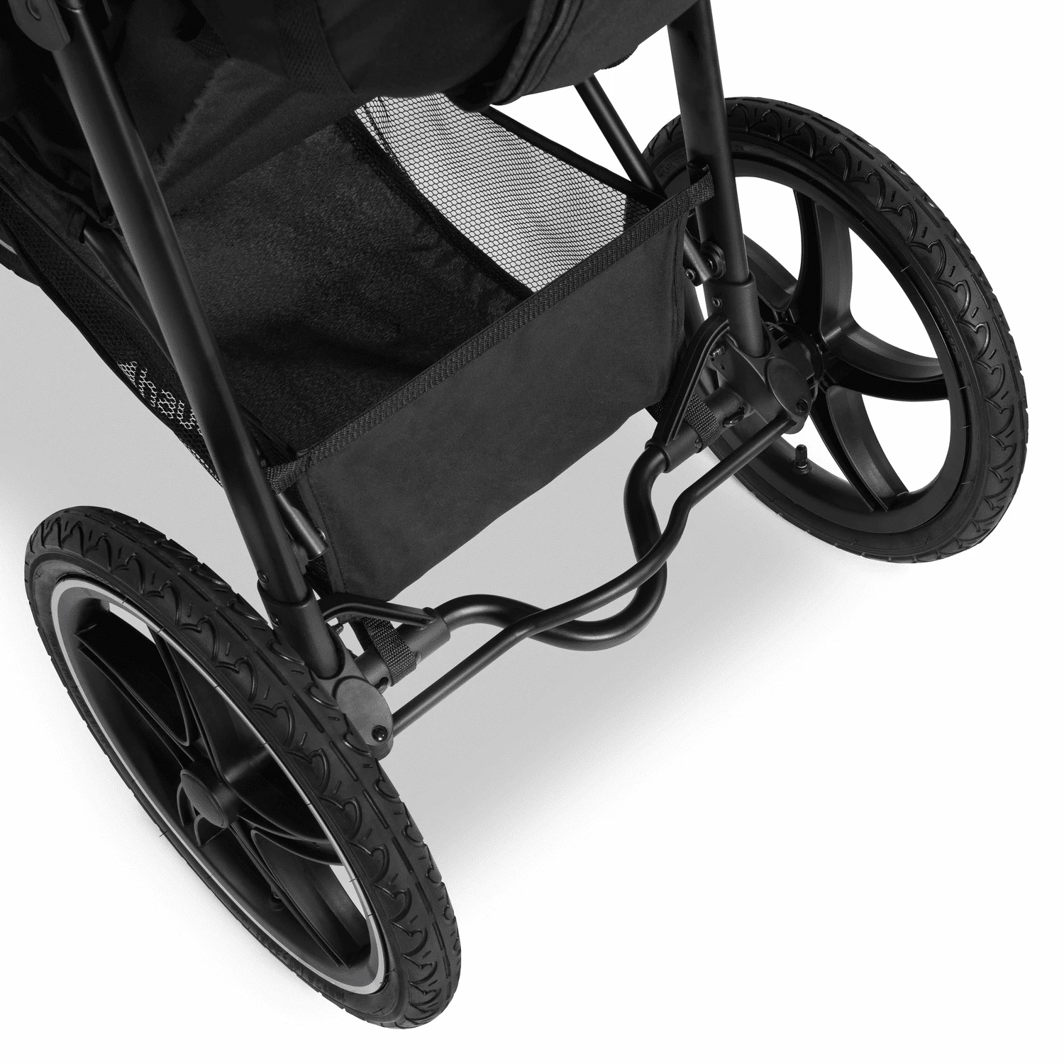 So that your child feels comfortable from the very beginning until kindergarten age, the extremely resilient pushchair offers an XL lying area and a large canopy with UV protection 50+, which protects against sun and rain. On hot days you can also open it, which reveals a mesh fabric that is air-permeable and serves as a large viewing window. Reflective light strips on the hood bring you and your family home safely at the end of your adventure. You simply pack the provisions for your tour in the huge basket.