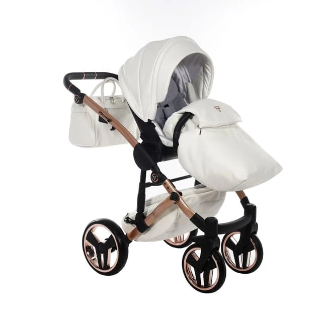 Junama Fluo Individual Pram – Satin White Rose Gold Chassis