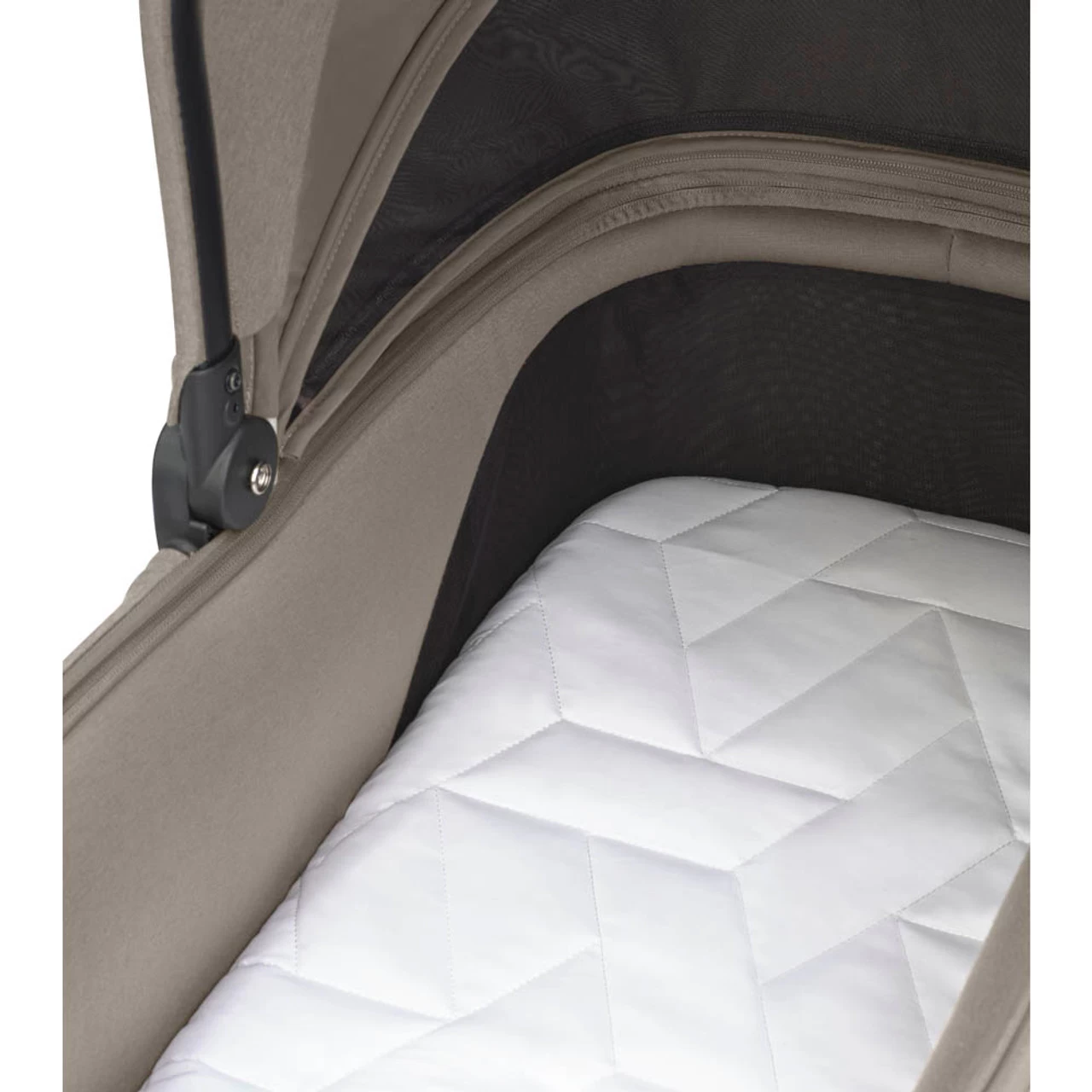 - A reversible padded mattress in the carrycot that features a high-density foam that helps keep baby comfortable all year round