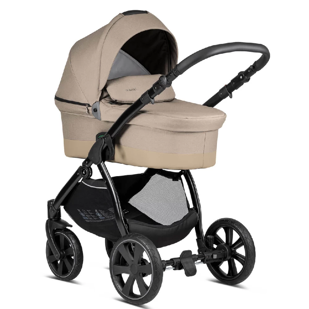 The compact Noordi Sole Go 3in1 Travel System – Chateau Grey will be the best choice for parents who are like to take offroad strolls. Durable aluminium chassis with Real-Gel™ wheels and adjustable shock absorption system ensures excellent ride on any terrain like forest trails, sand or snow. The One-Click™ braking system ensures the highest safety. The handlebar with luxe eco-leather grips can be adapted to match your height. Extra-large shopping bag allows you to put in your baby’s essentials.