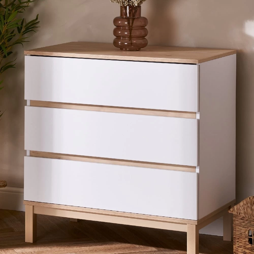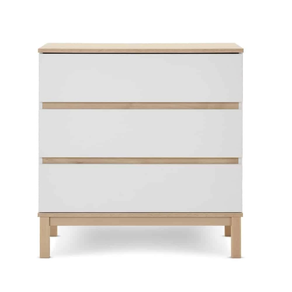 With its clean lines and two-tone colourway, the Astrid is not just a changing unit. The three large drawers fronted by a chic no-handle design provide plenty of storage. While the clever positioning of the changing top means you are stood face on to baby, allowing plenty of precious one to one time. Once you no longer need to use the changer, the removeable top ensures you have a stylish chest of drawers that will complement any room of the house for years to come.