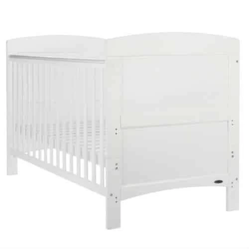 Obaby’s simple but stunning Grace Cot Bed, thoughtfully utilises clean and contemporary design to become a perfect fit for any child’s first nursery. The cot bed converts seamlessly from a cot of the highest quality into a cosy and stylish junior bed. This is done by simply splitting down either end and removing the fixed sides, meaning minimal disruption during little one’s often daunting transition. Once the change is complete, the bed can be suitable for a child up to 4 years, meaning the Grace is durable and great value. As your child grows, learning to sit and stand, the mattress base can be lowered, with three base heights available in total, providing extra security and reassurance and the presence of teething rails ensures your child’s delicate teeth are protected. The stylish matching dresser provides a spacious changing area at a comfortable height for parents and two large open shelf spaces below for all baby’s changing essentials. With smooth lines and a carefully considered design, this changing unit can easily accommodate a standard baby changing mat and looks fantastic alongside the other co-ordinating pieces in the Grace collection.