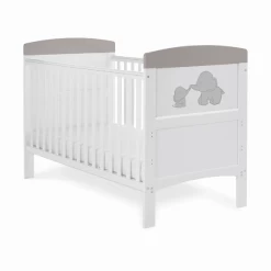Obaby Me & Mini Me Grey Elephants Grace Inspire Cot Bed
