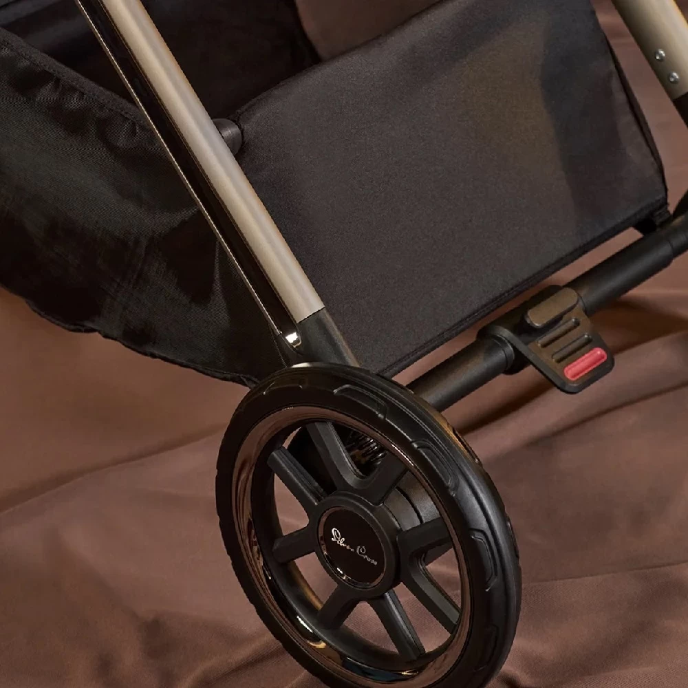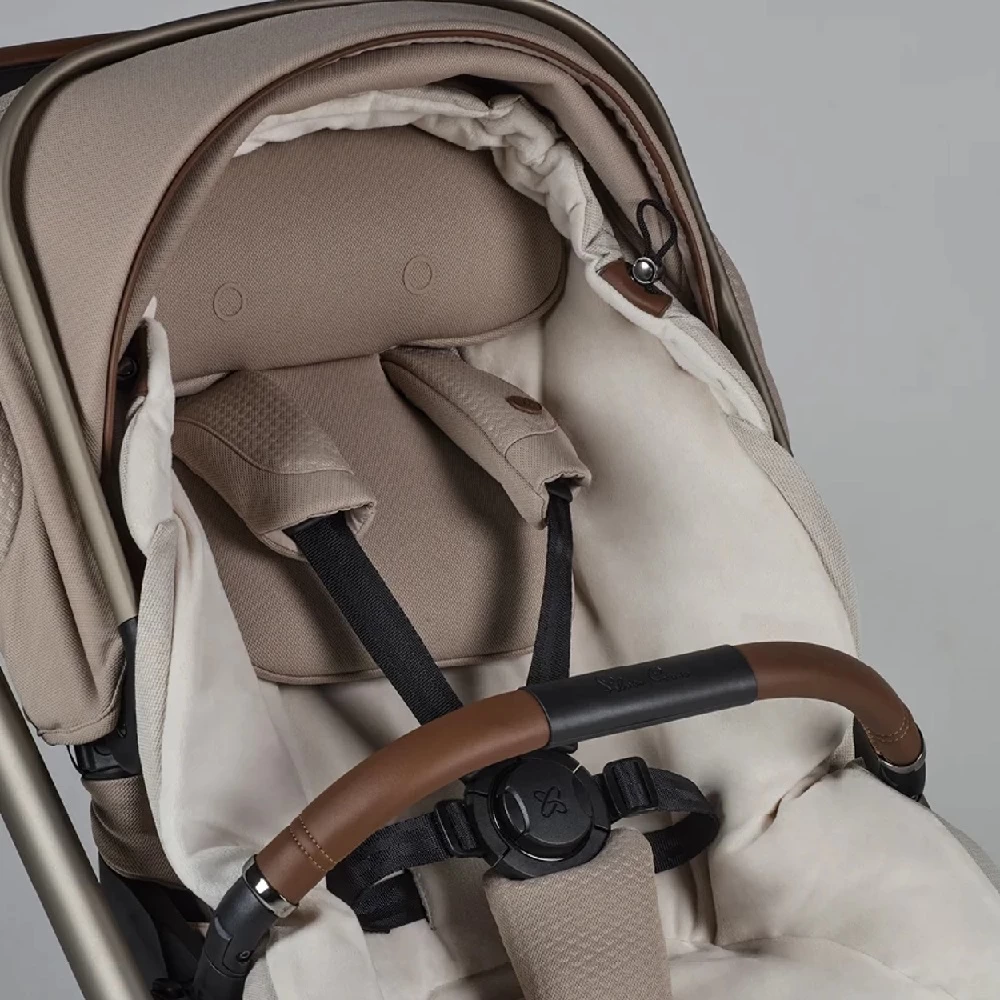 Silver Cross Reef 2 SPECIAL EDITION Frappe Pushchair and Accessories is the most elegant choice for your new adventure. Beautifully tailored with luxury jersey fabrics, a tonal matte metallic chassis and soft satin details. The vegan leather handle and luxury jersey fabrics will stay pristine thanks to the self-standing fold preventing them from touching the ground.