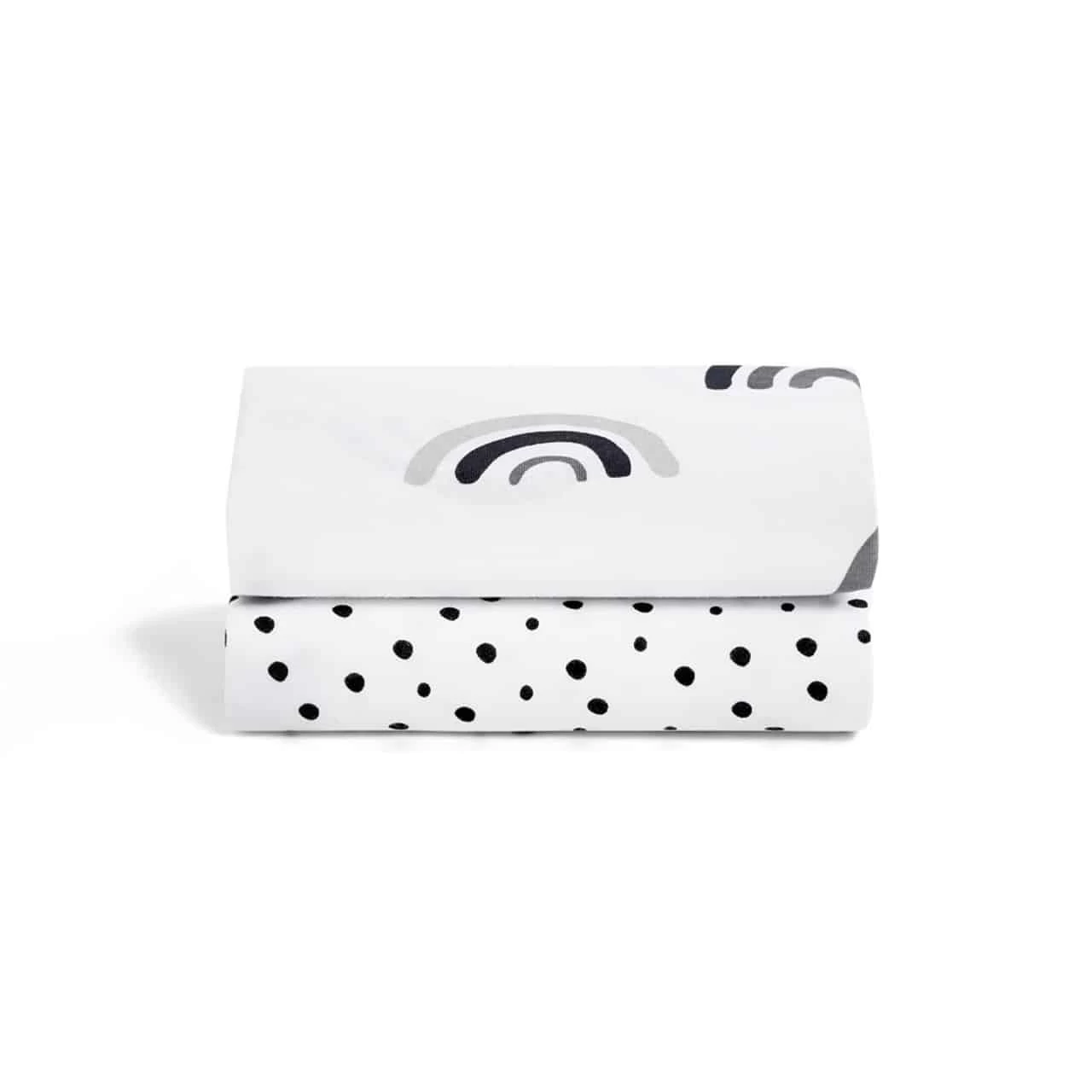 The Snuz 2 Pack Crib Sheet Set is made from 100% cotton and comes with two designs. Fits SnuzPod 4 and all bedside cribs mattresses (50x90cm max.).