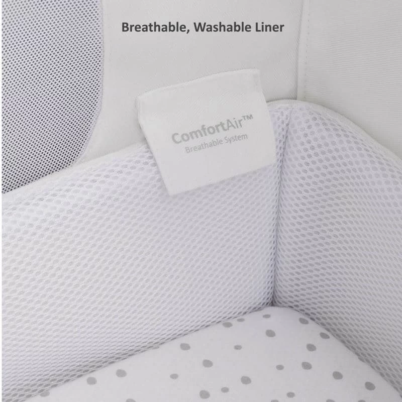 The SnuzPod 4 has improved on the already extraordinary SnuzPod 3 with fantastic advantages for parents and features that guarantee the SnuzPod 4 is the ultimate sleeping environment for your baby. The SnuzPod 4 boasts the innovative ComfortAir Breathable System which encourages healthy air flow and improves breathability that assists with your baby’s temperature regulation as a result. It includes mattress-level air flow vents, a super supportive mattress with 3D breathable mesh cover, upgraded base ventilation and a machine washable padded mesh liner.