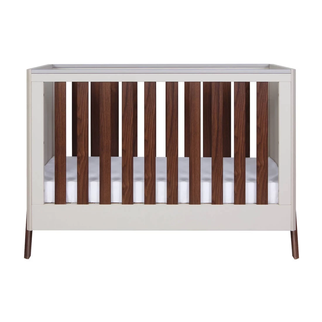 Tutti Bambini Fuori 4in1 2 Piece Nursery Room Set – White Sand/Warm Walnut is a Scandinavian-inspired blend of modern simplicity and functionality. With exposed legs and a sleek appearance, it’s an ideal choice for those who desire a clean, contemporary nursery look.